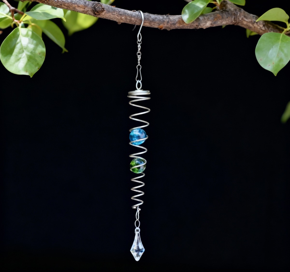 Die drehbare Spirale eignet sich hervorragend als Windspiel im Garten, als Dekoration am Fenster oder als energetisches Element im Wohnraum. Schon bei leichter Bewegung entfaltet sie ihre beruhigende, fast hypnotische Wirkung.