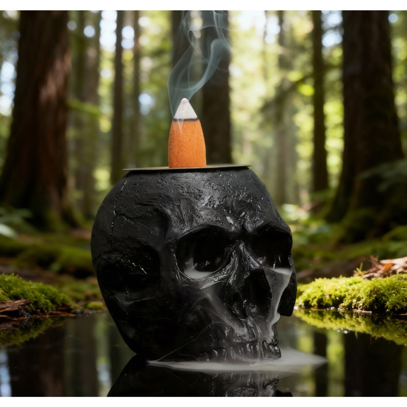 Setze einfach einen Rückfluss-Räucherkegel auf den vorgesehenen Platz. Nach dem Anzünden fliesst der Rauch langsam nach unten und füllt den Totenkopf mit mystischem Nebel. Ideal für Meditation, Entspannung oder als stilvolle Dekoration im Wohnraum, Studio oder Ritualbereich.